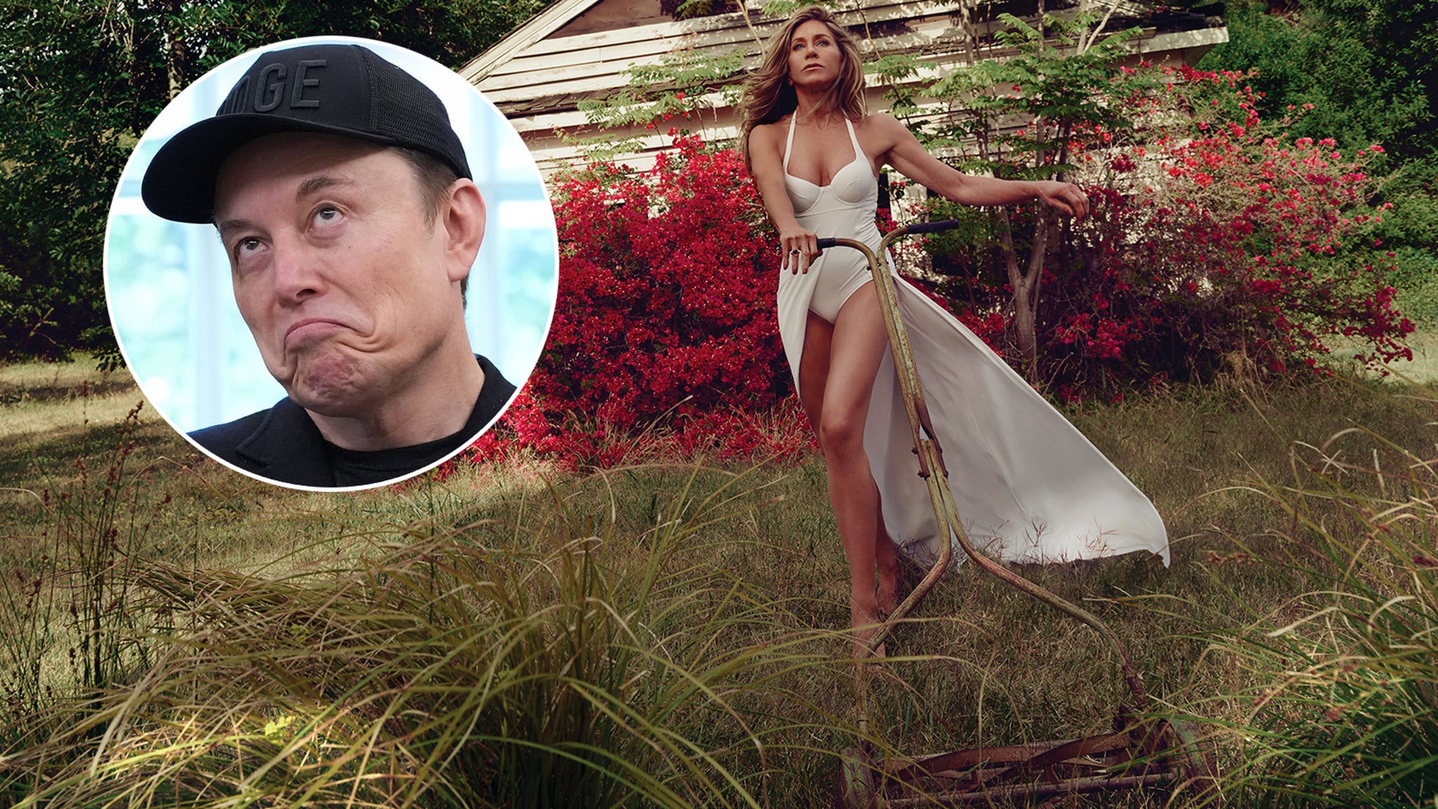 Aniston was asked about her on-camera romance with Jon Hamm when the Vanity Fair reporter mentioned Musk.