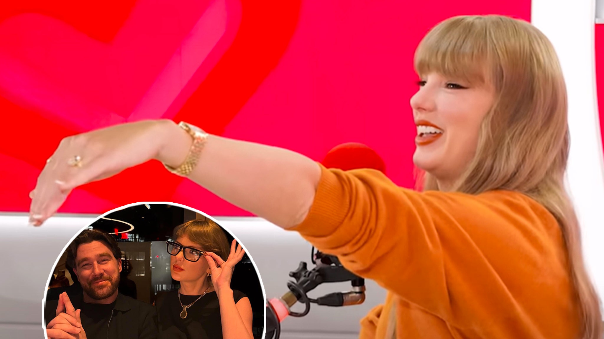 "He would do that. You'll love that. All my guy friends are like, 'I just want Travis to pick me up and throw me over a roof or in the pool. You know he's six-foot-six, but the width of the shoulders ... seeing him walk through a door is genuinely a privilege," Swift joked, to which James said, "That's great, I'd like him to do a wrestling move on me into a pool or something.: