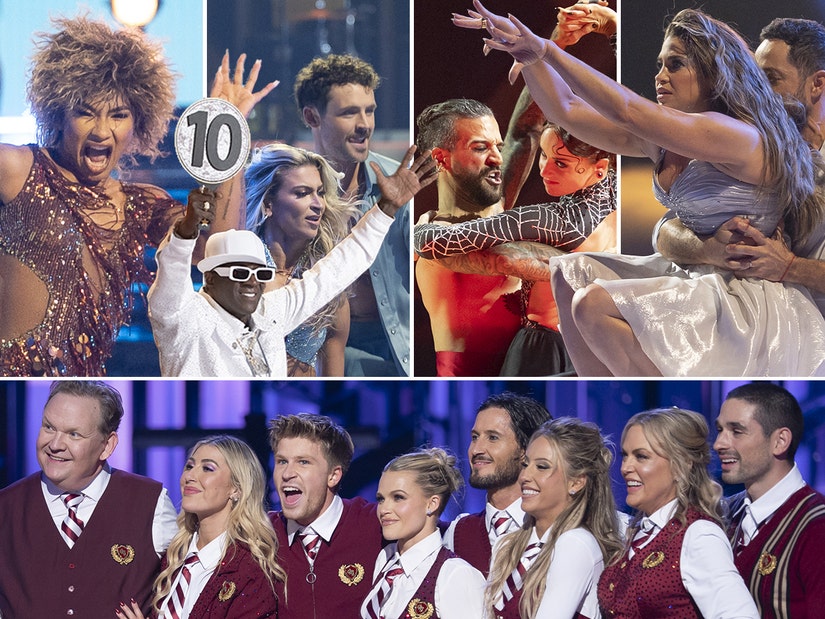 (Danielle & Pasha, Whitney & Mark, Jordan & Ezra, and Dylan & Daniella - "25 or 6 to 4," Chicago) As a bonus, the actual band Chicago was going to be performing live, which means it's even more important to step up and impress. The inspiration for the dance, per Danielle, was The Blues Brothers meet special agents, which meant cool shades for the guys, withTeam Captain Danielle not hesitating to give Alfonso a central role in the piece. "We're not losing to Julianne," Alfonso said, teaching his team "The Carlton." "I'm not losing to Julianne."