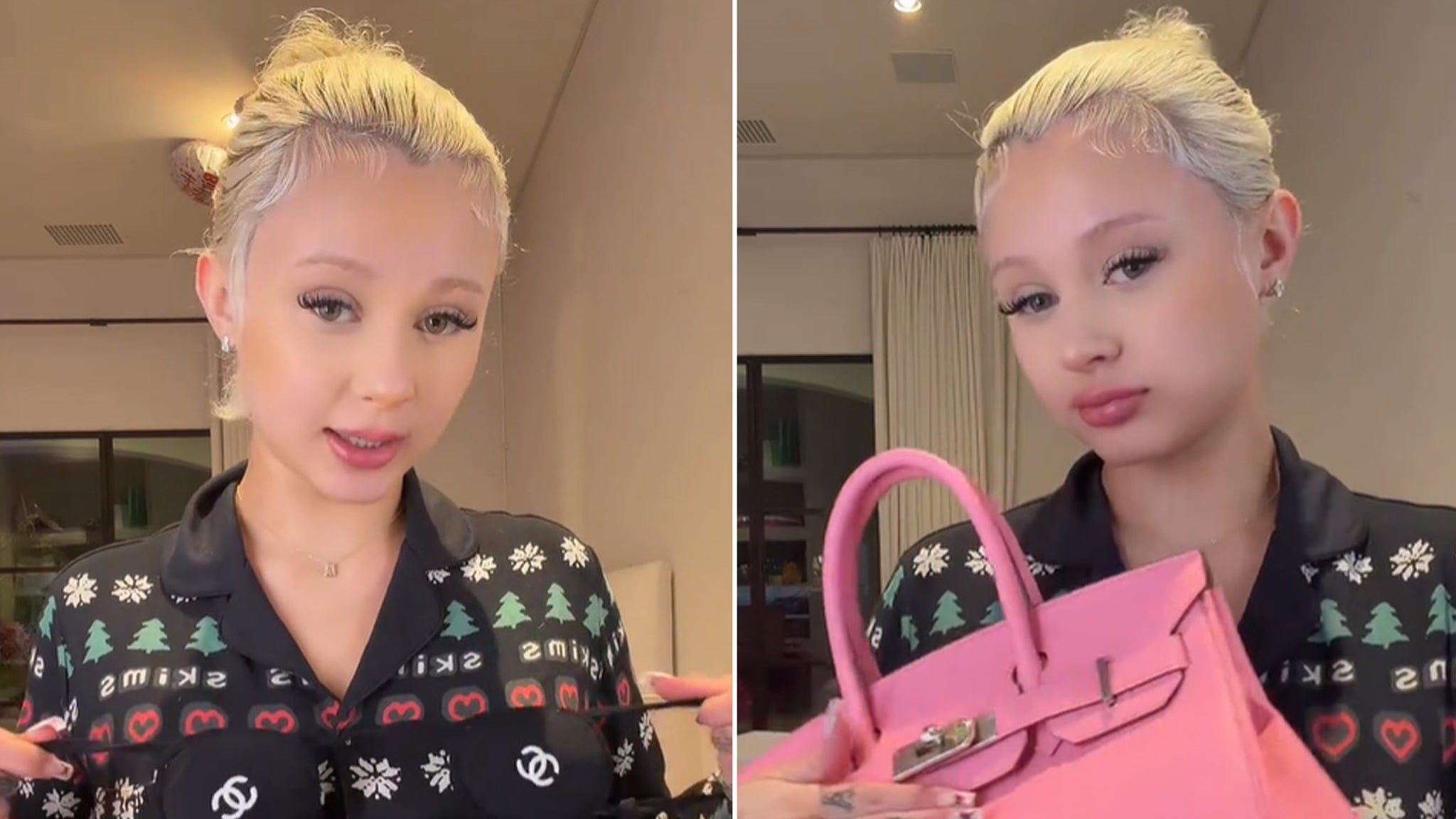 She then pivoted "back to bags," sharing a "cute" pink Chrome Hearts handbag she received, before unveiling the jaw-dropping, luxurious -- and very pricey -- gift she was given by Kourtney: a pink Hermès Birkin.