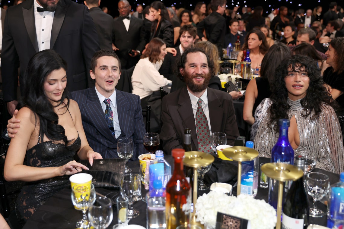 Kylie Jenner, Timothée Chalamet, Josh Safdie, and Odessa A'zion attend the 31st Annual Critics' Choice Awards at Barker Hangar on January 4, 2026 in Santa Monica, California
