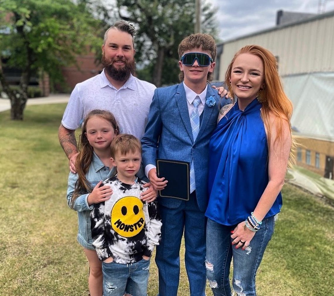 "And just like that the chapter of middle school ends. So proud of you Benny, your next chapter is going to be amazing… find joy in the journey! πŸ˜ŽπŸ’™ #bennybaby #thingsthatmatter #8thgradegraduation" - Maci Bookout alongside her kids Bentley, Jayde and Maverick